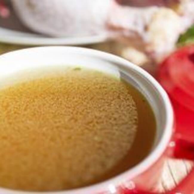 - Strain the drippings from the turkey into a frying pan. Stir in the chicken broth mixture liquid, simmer on low heat to thicken